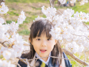 こないだ小学校入学式の後に、満開の桜を背景にランドセル姿の撮影をしました📸
